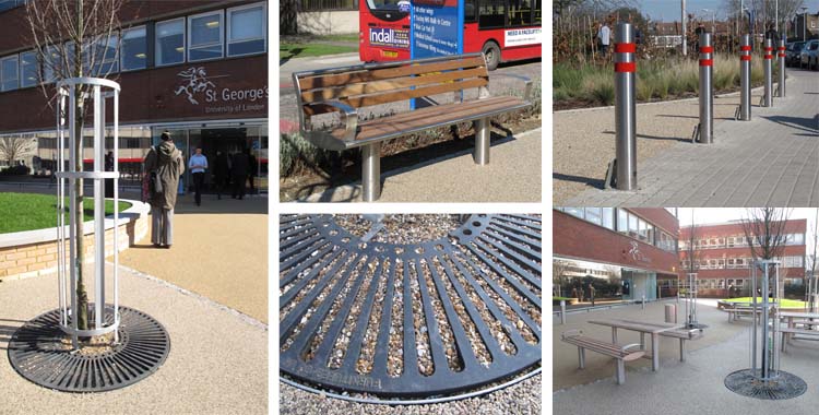 家具为圣乔治医院提供一系列产品。雷竞技下载链接不锈钢和木材天顶座椅,长凳和桌子在缎面抛光饰面中供应到医院。ZEN702 ZENITH ZENITH TAVERS不锈钢系柱也被提供给该地点。选择森伯斯特圆形树格栅和卫兵作为对年轻树的保护。