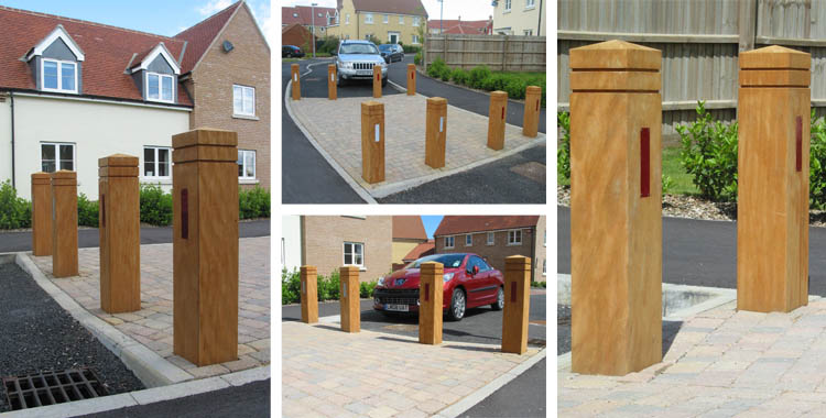 家具公司为新建的Bramble Court住宅开发项目提供了ESG200/1500 Epping木支柱。为了帮助停车,护柱上附加了反光条。