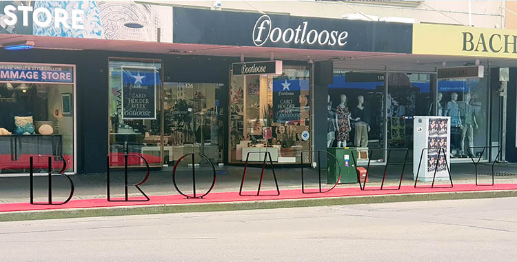 Palmerston North City委员会最初是寻求将城市中央广场的百老汇大道入口与标志标记,但是已经看到了家具的电气形态产品系列,实现了将标牌元素与有用的循环停车场提供联合。拼写百老汇的八个单独的封面字符已放在一个红色的合成草表面上,为Palmerston North Theatre和Cinema区提供红地毯入口。指定信函的城市规划师对项目结果很高兴,评论说,它“成本为理事会的替代百老汇入口标志的价格。