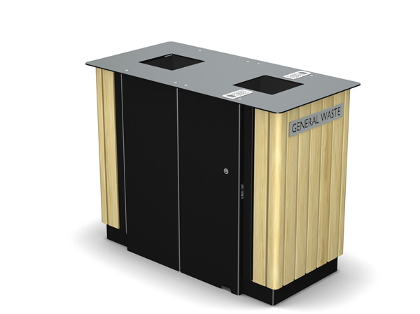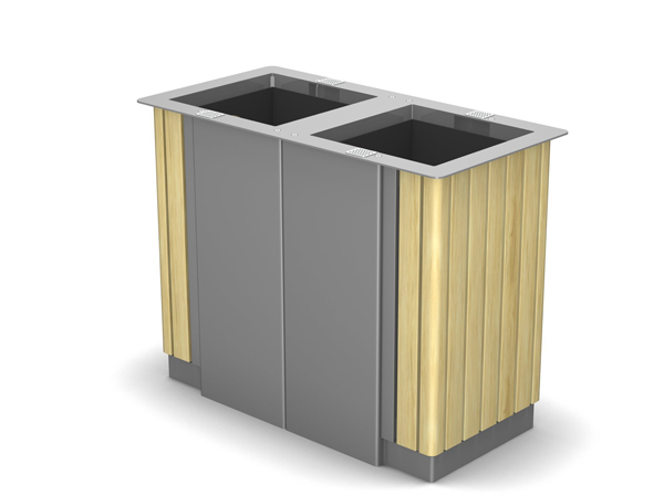 Arca双方端垃圾箱有两个内衬,可将垃圾和可回收物进行分类。Arca垃圾桶的设计使得任何可能随着时间的推移而磨损或损坏的部件(如锁套、盖子、车身面板和门框)都可以立即更换,从而避免了更换整个垃圾桶的需要。这种方法允许您指定为您的方案定制的材料和饰面组合。它也可以作为全钢或木材覆盖的模型。