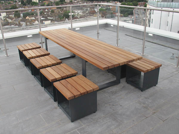 定制的3米长Hollo餐桌和独立的HLL55/45 Hollo凳子。