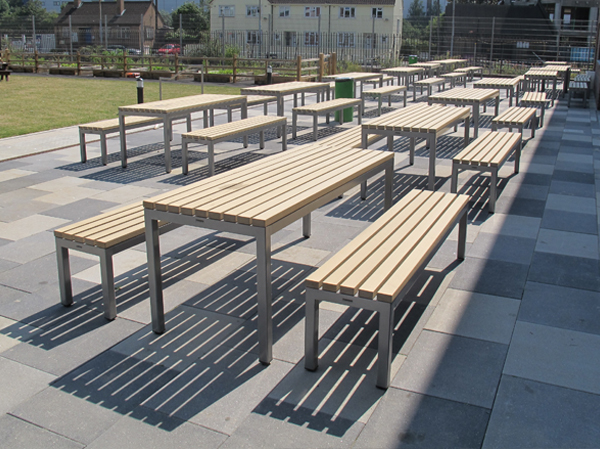 平行的长凳可以单独使用,也可以与配套的桌子一起使用,形成户外野餐或用餐套间。钢框架和紧密间隔的板条组合使得长凳足够重,可以作为安全场地上的独立单元使用,但也可以作为更多公共区域的固定和地面选项。台面板条是在iroko硬木作为标准,与选定的模型也可在木塑料复合材料。提供两种标准长度,可舒适地容纳3或4人。