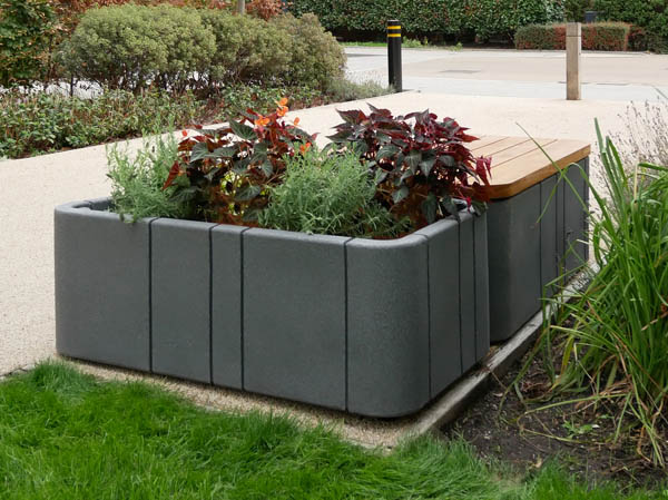 梯形的Uniun Planter是一种适合大型开放铺装空间的当代花盆。该花盆由轻质但坚韧的聚乙烯制成,可用于多种表面处理,以及100%回收版本,容量为150升。该播种机有可调节脚,允许在倾斜的地面上水平,还配有地面固定板,用于安全固定。这些单元可以与全座位或组合座位和种植模块集成,允许数百种可行的布局,包括直线和集群。